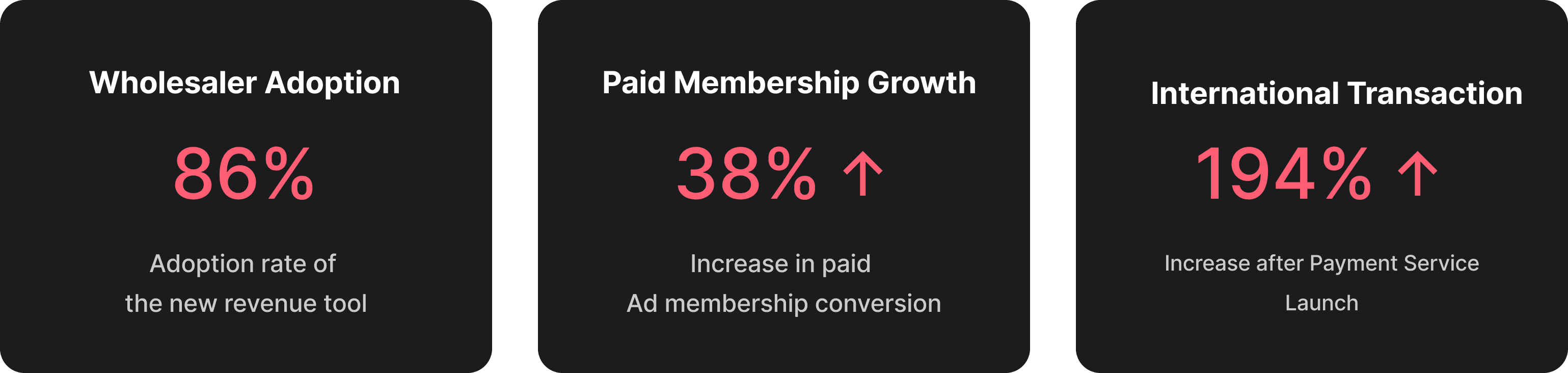 One quarter after launch, the Sales Lab reached 86% adoption among wholesale sellers. More importantly, sellers who used the tool began investing in paid advertising, driving a 38% increase in ad membership conversion. The tool didn't just get used. It changed seller behavior and drove real revenue.