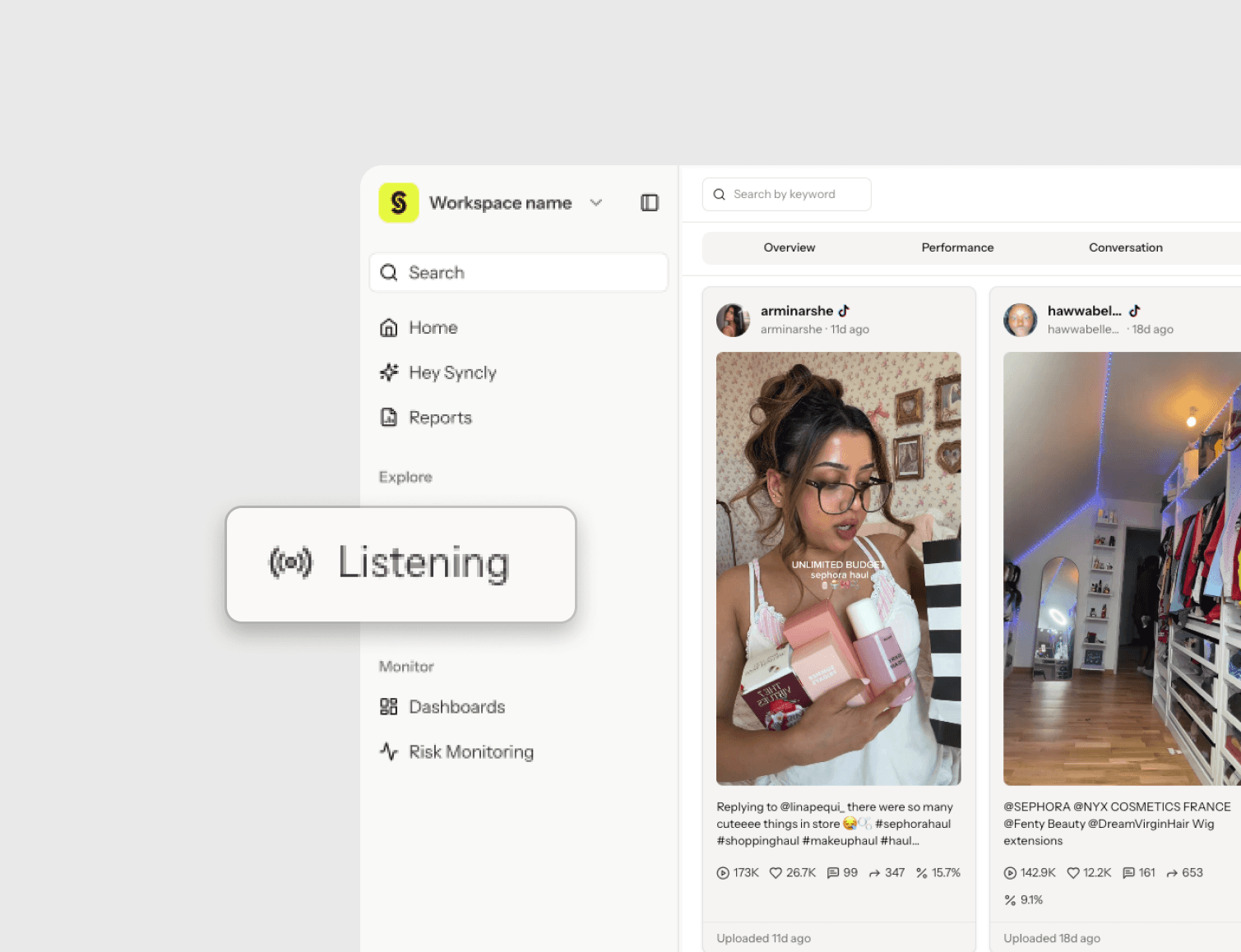 Platform expansion — One platform for CX data, creator analytics, and brand partnerships: Syncly already centralizes VoC customer feedback into AI-powered insights. Adding video social listening creates a unique position. The only platform where brands can connect CX data with creator analytics, performance tracking, and partnership intelligence in one place.