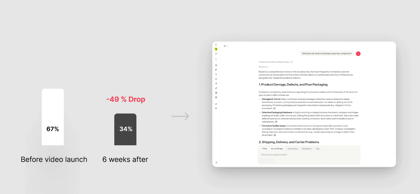 The AI chat was built for CX text data. When the platform expanded into video, it kept returning text-only answers with no connection to source clips, creators, or visual context. Users had no reason to ask when the answers didn't match the data they were actually looking at.
